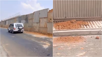 വാഹനങ്ങൾ റോഡിലൂടെ പോകുന്നു, ദേശീയപാതയിലെ പാർശ്വഭിത്തിയിൽ നിന്ന് കൂറ്റൻ സ്ലാബ് താഴേക്ക്, രക്ഷപ്പെട്ടത് തലനാരിഴക്ക്