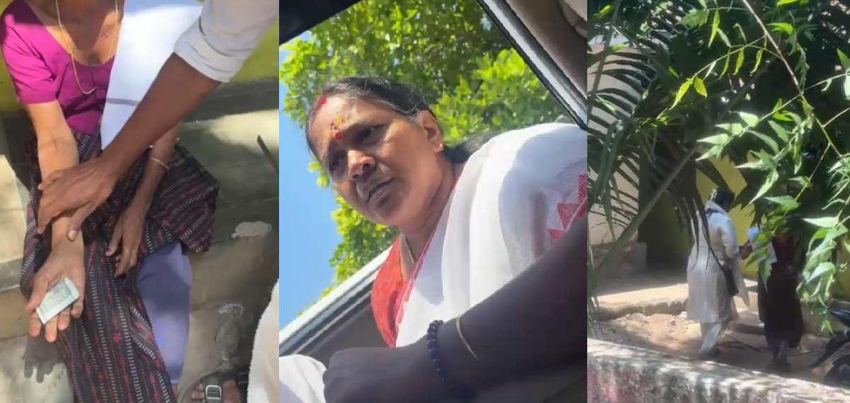 കോണ്ഗ്രസ് പ്രവര്ത്തകര് തന്നെയാണ് ദൃശ്യങ്ങള് പകര്ത്തിയത്. തരുവാകുറിശ്ശിയില് ഒരു മരണവീട്ടില് എത്തിയതായിരുന്നു ശോഭാ സുരേന്ദ്രനും പ്രവര്ത്തകരും. ഇതിന് ശേഷം ശോഭാ സുരേന്ദ്രന് തിരികെ കാറില് കയറി. ഇതിനിടെ ശോഭാ സുരേന്ദ്രന് ഒപ്പമുണ്ടായിരുന്ന സ്ത്രീ, മരണ വീടിന് സമീപമുണ്ടായിരുന്ന വീട്ടിലെ വയോധികയുടെ കയ്യില് പണംവെച്ചു നല്കുകയായിരുന്നു. സംശയം തോന്നി വീട്ടില് പോയി പരിശോധിച്ചപ്പോള് വയോധികയുടെ കയ്യില് അയ്യായിരം രൂപ ഉണ്ടായിരുന്നതായി കോണ്ഗ്രസ് പ്രവര്ത്തകര് പറഞ്ഞു.