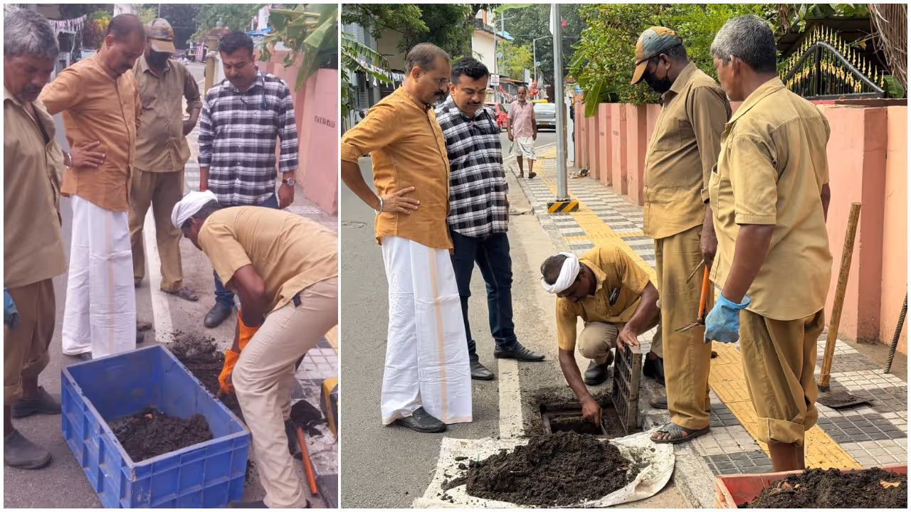 കേരള റോഡ് ഫണ്ട് ബോർഡ്, പൊതുമരാമത്ത് വകുപ്പ്, സ്മാർട്ട് സിറ്റി എന്നിവയുടെ കീഴിലുള്ള റോഡുകളിലെ ഓടകൾ കൃത്യമായി വൃത്തിയാക്കാത്തതിനാൽ മണ്ണും മാലിന്യങ്ങളും നിറഞ്ഞ് മൂടിക്കിടക്കുകയായിരുന്നു. റോഡരികിലെ വെള്ളം ഓടകളിലേക്ക് ഒഴുകിപ്പോകേണ്ട ദ്വാരങ്ങൾ അടഞ്ഞുകിടക്കുന്നതിനാൽ ചെറിയ മഴയിൽ പോലും വലിയ വെള്ളക്കെട്ടാണ് ഇവിടെ അനുഭവപ്പെട്ടിരുന്നത്. ഈ പ്രശ്നത്തിനാണ് ഇപ്പോൾ പരിഹാരമായിരിക്കുന്നത്. മറ്റ് വകുപ്പുകൾ നടപടിയെടുക്കുന്നത് കാത്തുനിൽക്കാതെ ശ്രീകണ്ഠേശ്വരം സർക്കിളിലെ കോർപ്പറേഷൻ ശുചീകരണ തൊഴിലാളികൾ നേരിട്ട് മണ്ണ് നീക്കം ചെയ്യാൻ ഇറങ്ങുകയായിരുന്നുവെന്ന് മേയർ ഫേസ്ബുക്ക് പോസ്റ്റിലൂടെ വ്യക്തമാക്കി. ഓടകളിൽ നിന്ന് നീക്കം ചെയ്യുന്ന മണ്ണ് വീണ്ടും മഴവെള്ളത്തിൽ ഒലിച്ചിറങ്ങാതിരിക്കാൻ ഉടനടി വാഹനമെത്തിച്ച് അവ നീക്കം ചെയ്യാനും നടപടി സ്വീകരിച്ചിട്ടുണ്ട്.കഴിഞ്ഞ ദിവസം കണ്ണമ്മൂല വാർഡിൽ നടന്നതിന് സമാനമായി ഇന്നും ശുചീകരണ തൊഴിലാളികൾക്കൊപ്പം വി.വി. രാജേഷ് വഞ്ചിയൂർ വാർഡിലെ പ്രവർത്തനങ്ങളിൽ സജീവമായി പങ്കാളിയായി. നഗരത്തിലെ വെള്ളക്കെട്ട് പ്രശ്നം പൂർണ്ണമായി പരിഹരിക്കാൻ ഇത്തരം യുദ്ധകാലാടിസ്ഥാനത്തിലുള്ള ശുചീകരണ പ്രവർത്തനങ്ങൾ തുടരുമെന്നും അദ്ദേഹം അറിയിച്ചു.